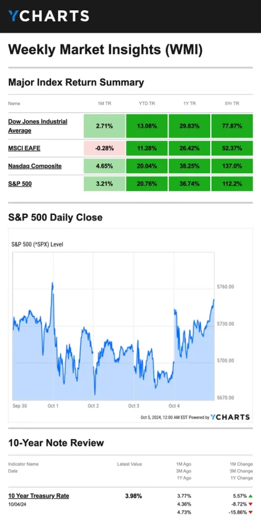 Source: YCharts.com, October 5, 2024. Weekly performance is measured from Monday, September 30, to Friday, October 4.