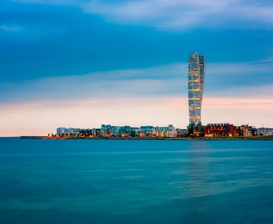 Skyline of Malmo Sweden with Famous Turning Torso Building